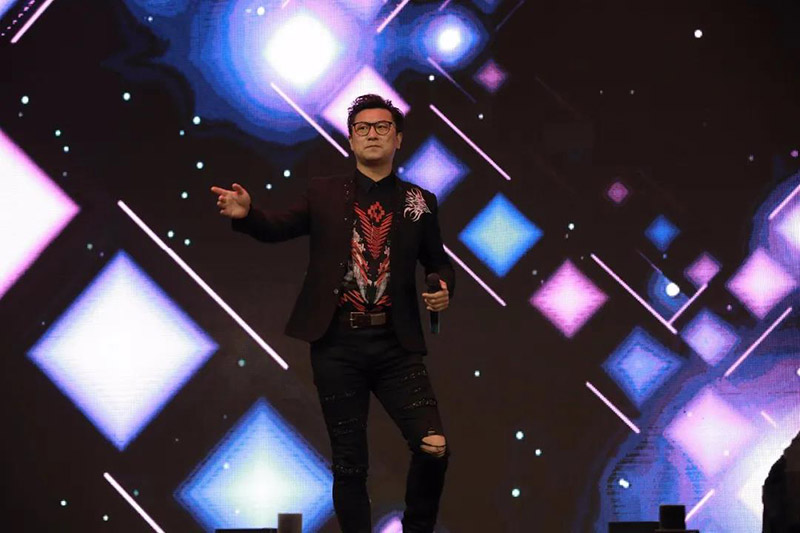 最后,天格藝術(shù)團(tuán)高團(tuán)長上臺發(fā)表節(jié)日祝福
