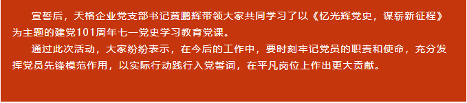 憶黨史 守初心丨天格企業(yè)開展“迎七一黨員宣誓”活動