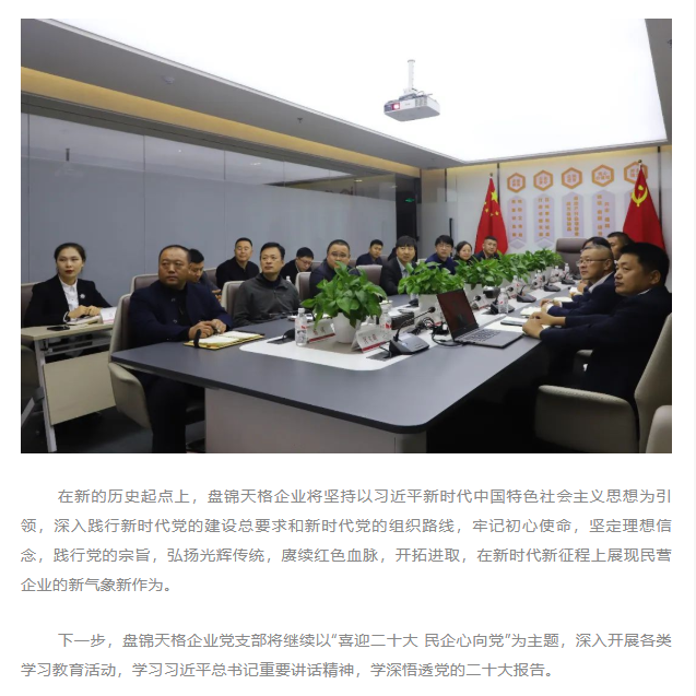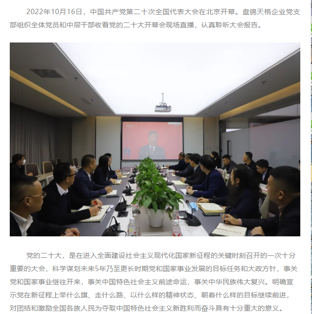 天格黨建丨喜迎二十大 民企心向黨!盤(pán)錦天格企業(yè)黨支部組織黨員、中層干部收看二十大開(kāi)幕盛況