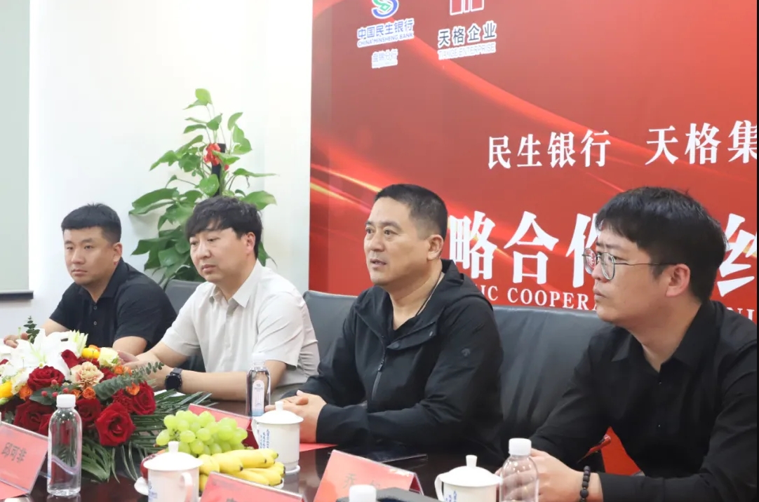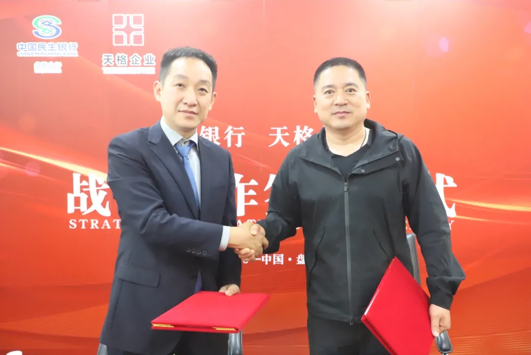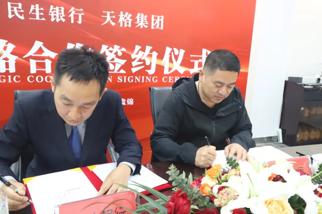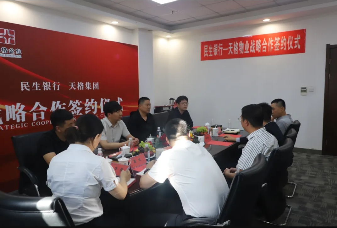 2024年5月15日下午,盤錦天格企業(yè)與中國民生銀行盤錦分行舉行戰(zhàn)略合作簽約儀式。天格企業(yè)董事長郭春剛、總裁邢峰濤、天格物業(yè)總經理喬旭、副總經理柳迪。民生銀行盤錦分行行長邱可非,副行長尹巍及銀行相關部門負責人參加簽約儀式。